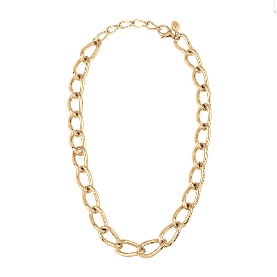 The Join Up women's necklace is made of polished IP gold steel and features a chain with oval links in a vaguely retro style. Perfect on its own to embellish the décolleté in a sophisticated way, enchanting when combined with the other proposals of the collection, for a super trendy multi-wear.