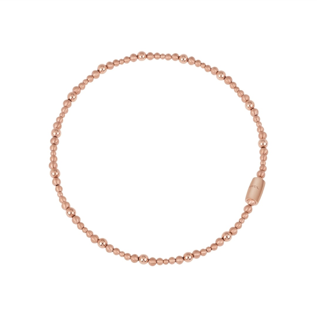 Magnetica System is the jewelry collection that, thanks to its different elements and magnetic closures, can be modified and take on ever-changing shapes and styles. The Sun choker is in IP rose steel composed of small spheres with different finishes, diamond-cut and polished. It can be worn alone or combined with any other element of the collection, to create new necklaces of different lengths.