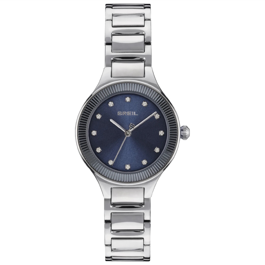 The Sheer women's watch is a passepartout designed to be worn at any time of day. The clean lines and simple elegance that distinguish it make it perfect for discreetly enriching any look. Polished steel case and bracelet, crystals at the indexes that illuminate the sunray blue dial surrounded by a knurled bezel in IP blue steel.
